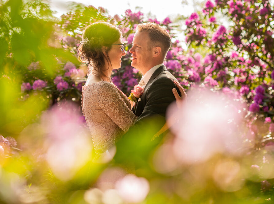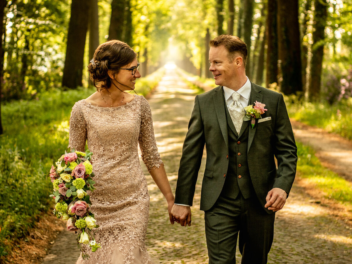 Even later vertrokken we naar Oldenaller in Putten voor de fotoshoot. Ze had heel veel tijd gepland voor de fotoshoot, dat is altijd fijn. We kunnen dan in alle rust foto's maken. Bij Oldenaller waren zoveel mooie plekjes om foto's te maken, dat we er nog wel veel langer hadden kunnen blijven. Maar er stond nog meer op het programma. We gingen daarna naar het gemeentehuis, kerk en 's avonds kwamen de daggasten, die nu niet mee mochten, om de beurt langs om hun te feliciteren. Toen de daggasten weg waren, was het nog net niet helemaal donker en zijn we nog naar het strand Nulde gegaan. De zon was nog niet helemaal onder en hebben daar nog een aantal foto's op het strand gemaakt met de ondergaande zon.