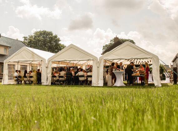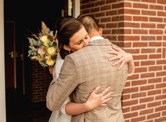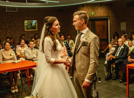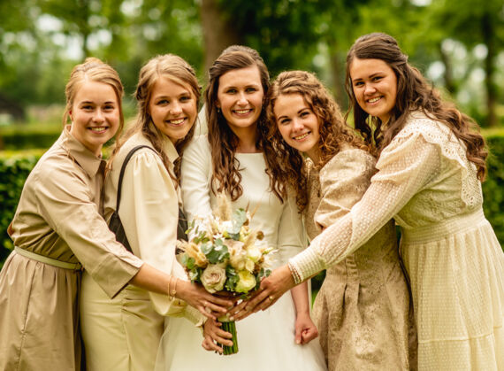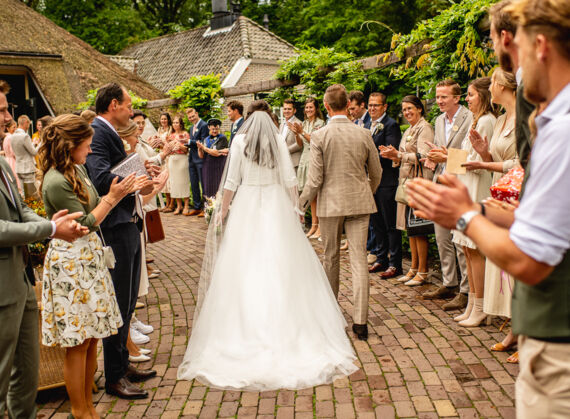 Na de fotoshoot gingen we naar de daggasten. Ze stonden al klaar om het bruidspaar op te wachten. Na een heerlijke lunch, was de ceremonie in het gemeentehuis van Staphorst. Daarna werden er groepsfoto’s gemaakt en was er tijd voor taart!