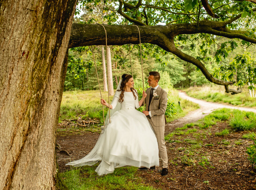 Na de first look gingen we foto’s maken in het bos. Een schommel was door een vriend van Herbert Jan opgehangen. Deze schommel is ook gebruikt tijdens hun loveshoot. Leuk dat deze nu ook weer werd gebruikt!