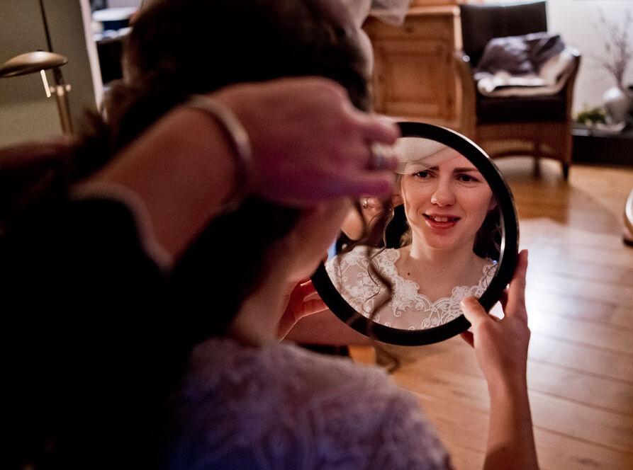 Toen ik bij Marlisa kwam, waren daar de voorbereidingen van de grote dag in volle gang. Marlisa haar haar werd nog even gedaan en daarna kon de jurk aan. Marien was iets later, maar niemand die zich daar druk om maakte. De hele dag was heel relax en overal was ruim de tijd voor. Heerlijk!