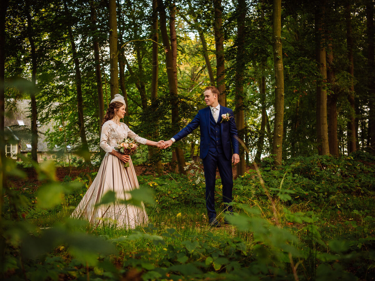 Na de first look gingen we foto's bij een prachtig landhuis met een prachtige groenrijke omgeving maken. Het bleef gelukkig nog steeds droog en de zon kwam even tevoorschijn. De weg naar het landhuis toe was een lange laan, hier konden we foto's maken met de auto, want dat was een heuse Dodge auto!
