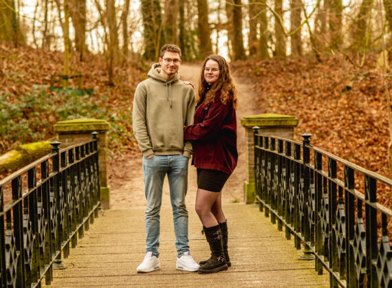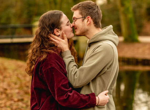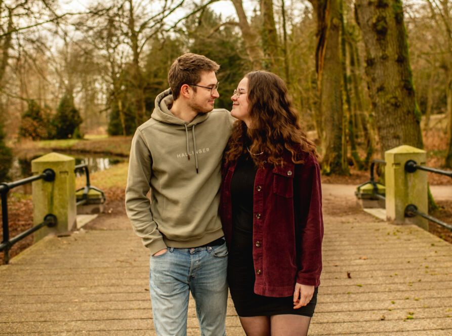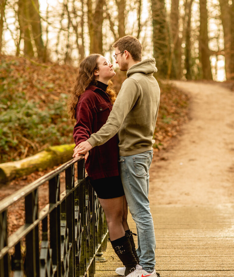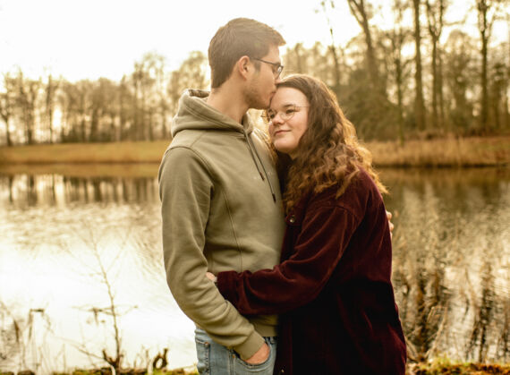 Niet iedereen wil in de winter foto's maken. Maar als je deze foto's bekijkt is de natuur toch mooi! Deze foto's werden eind januari gemaakt. Want toen was het een jaar geleden dat ze verkering kregen. Mooi om dan op die datum een loveshoot te doen.